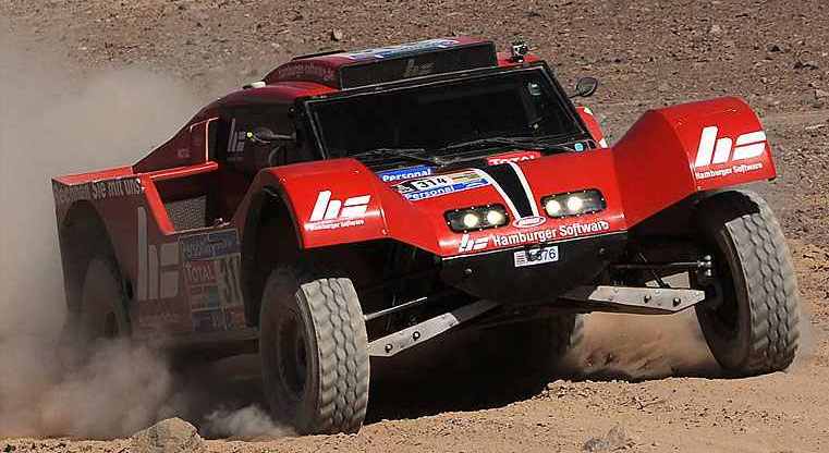 La dupla conformada por el príncipe qatarí Nasser Al-Attiyah y el español Carlos Sainz, que corren en el mismo equipo, presentó en París los nuevos vehículos con los que disputarán el Rally Dakar 2013. Se trata de dos buggies de tracción simple, con motor V8 y el foco puesto en la suspensión y en la potencia que superan todo lo anteriormente probado. El 'buggy' está diseñado bajo un innovador concepto con una combinación de la robustez y durabilidad de la carrocería de un vehículo idéntico de las Bajas norteamericanas con la precisión de la más avanzada ingeniería europea. Una máquina realmente impresionante.